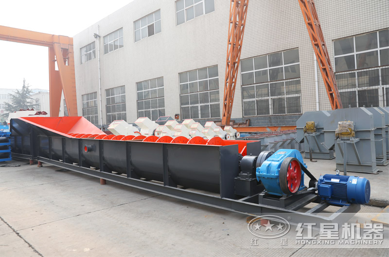 2、螺旋洗石機(jī)體型較長,采用臥式結(jié)構(gòu)布置,處理量也更大,多用于大型砂廠,該設(shè)備使用螺旋推進(jìn)石子而使石子與水和泥土分離,因而石子干凈但產(chǎn)量略低。