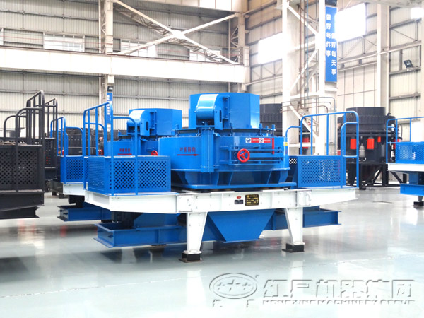 沖擊式破碎機(jī)是利用沖擊原理進(jìn)行碎礦的,工作時(shí),固定在主軸上的轉(zhuǎn)子在電動(dòng)機(jī)驅(qū)動(dòng)下按一定方向做高速旋轉(zhuǎn)運(yùn)行。當(dāng)物料從進(jìn)料斗落入到筒體內(nèi)之后,首先受到上轉(zhuǎn)子的副板錘沖擊,受到?jīng)_擊的物料以很高的速度沿轉(zhuǎn)子的切線方向拋向反擊板而產(chǎn)生撞出,物料在反擊板上的斜齒齒面及重力作用下,又沿斜下方向返回到轉(zhuǎn)子體外圓周與反擊板之間(即破碎腔),物料再次受到急速旋轉(zhuǎn)的主板錘沖擊后又被拋向反擊板,并繼續(xù)重復(fù)該過(guò)程。由于物料在破碎腔內(nèi)受到板錘和反擊板的周而復(fù)始的沖擊,以及物料塊之間的相互撞擊,這就使物料沿其自然節(jié)里面、層里面發(fā)生破碎。當(dāng)破碎后的物料粒度小于第一級(jí)轉(zhuǎn)子的排料間隙時(shí),物料在重力作用嗲進(jìn)入第二級(jí)轉(zhuǎn)子的破碎腔。第二級(jí)破碎過(guò)程與第一級(jí)相同,所不同的是第二級(jí)轉(zhuǎn)子的線速度比第一級(jí)更高,物料所受到的沖擊力更大,因此,可使物料破碎得更細(xì)小。當(dāng)物料破碎到預(yù)期成品粒度后,便從出料口排出。